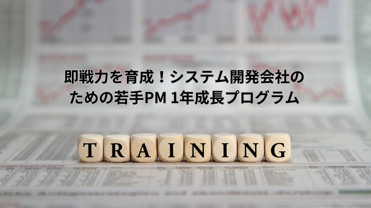 オンラインを中心とした、若手プロジェクトマネージャ(PM)のための1年間の集中プログラム! 毎週1on1の面談を通じて、1億円規模のプロジェクトを実際にマネジメントしている若手PMをサポートします。会社の方針やプロジェクトの状況に合わせて柔軟にカスタマイズ可能です。1年間で即戦力のPMに成長させるためのカリキュラムをご紹介します。